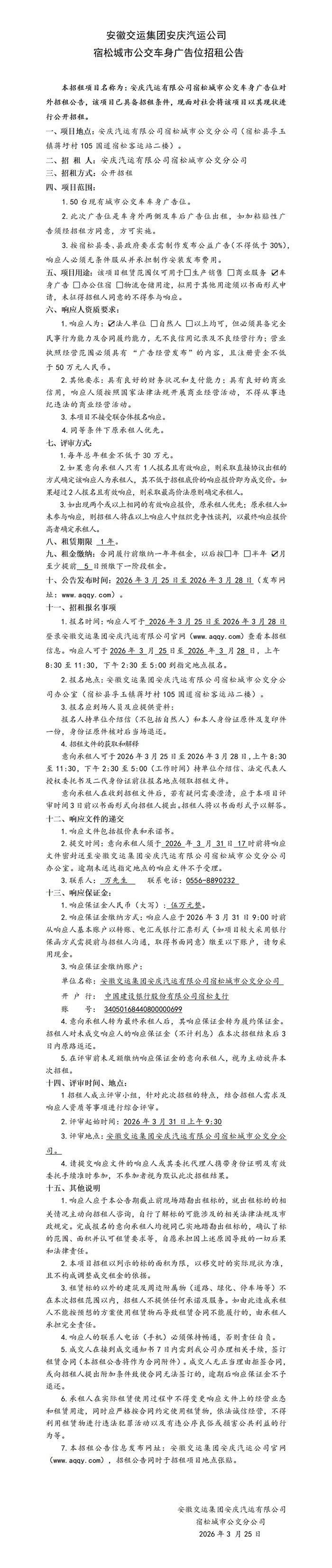 宿松城市公交車身廣告招租公告