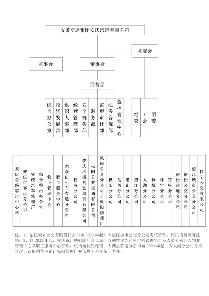 安徽交運(yùn)集團(tuán)安慶汽運(yùn)有限公司組織架構(gòu)